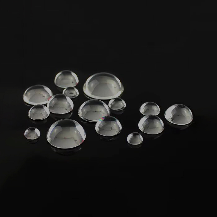 Half-ball lenses are hemispheres.Half-ball lens have uniform light dispersion and are commonly used in high power LED and UV LED, focusing and coupling light. It has many advantages over silicon lens and plastic lens.